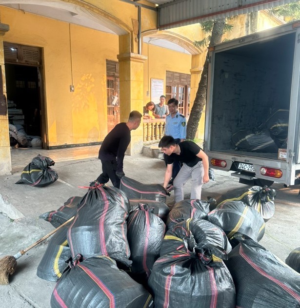 | Chuyển hàng hóa vào kho tạm giữ. (Ảnh: Cục QLTT Hải Dương) |
