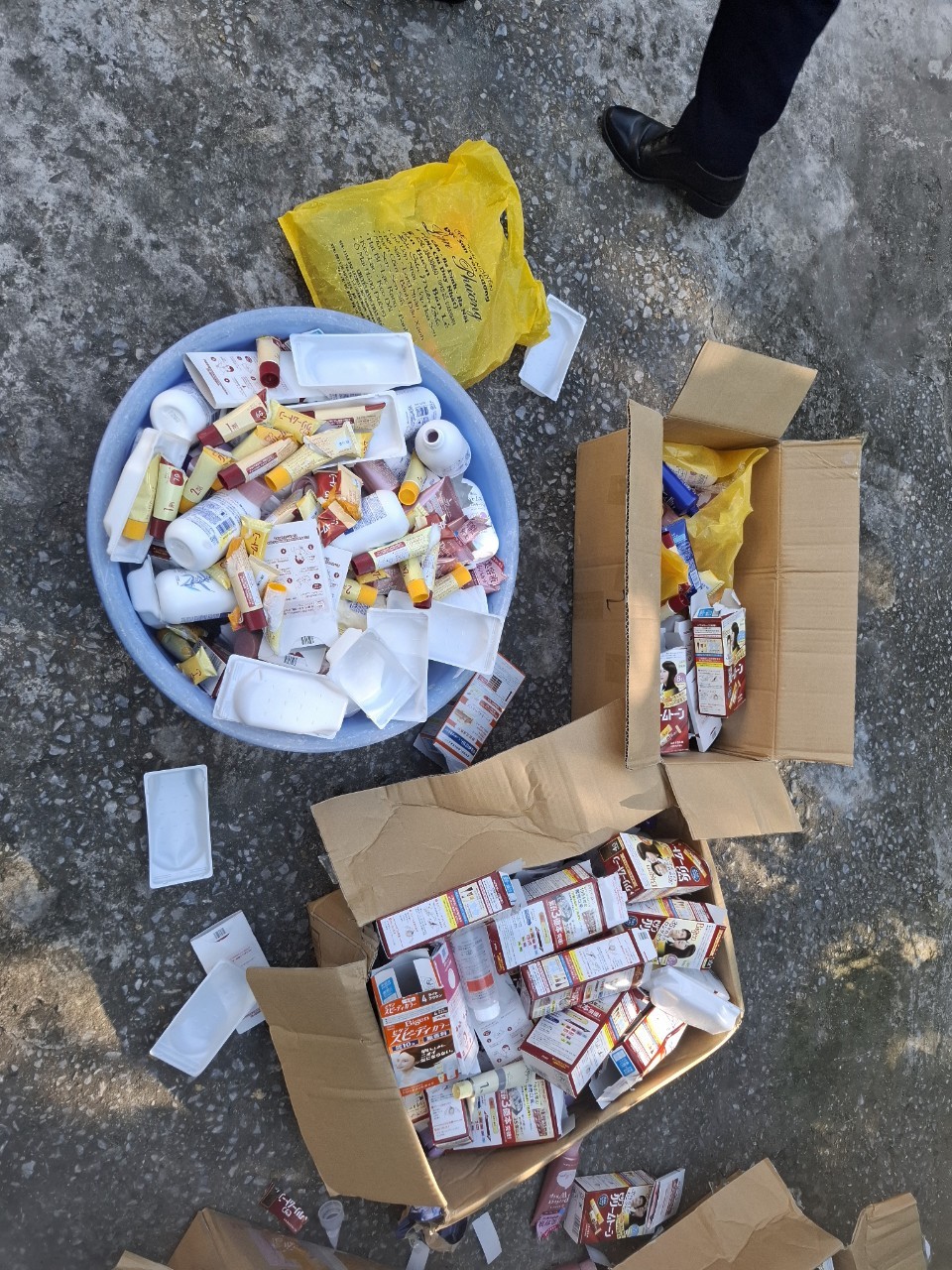 Tại thời điểm kiểm tra phát hiện hộ kinh doanh đang buôn bán hàng hóa là mỹ phẩm nhập lậu gồm: 55 chai sữa dưỡng ẩm và chống nắng Hatomugi SPF31 (loại 250ml); 35 tuýp sữa rửa mặt Hatomugi (loại 130g tuýp màu xanh); 25 tuýp tuýp sữa rửa mặt Hatomugi (loại 130g tuýp màu trắng); 27 tuýp sữa rửa mặt Hatomugi (loại 170g tuýp màu trắng); 50 tuýp sữa rửa mặt Senka (loại 120g tuýp màu hồng) và 70 hộp thuốc nhuộm tóc Bigen (hộp gồm 2 tuýp 40g/tuýp).