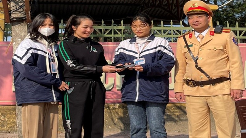 Ngay khi nhặt được các em đã đi tìm người đánh rơi tài sản, nhưng do không tìm được nên hai em nhờ cảnh sát giao thông trong Tổ tuần tra kiểm soát, xử lý vi phạm giao thông của Công an huyện Tân Yên đang làm nhiệm vụ tại khu vực cổng trường THPT Tân Yên số 1.