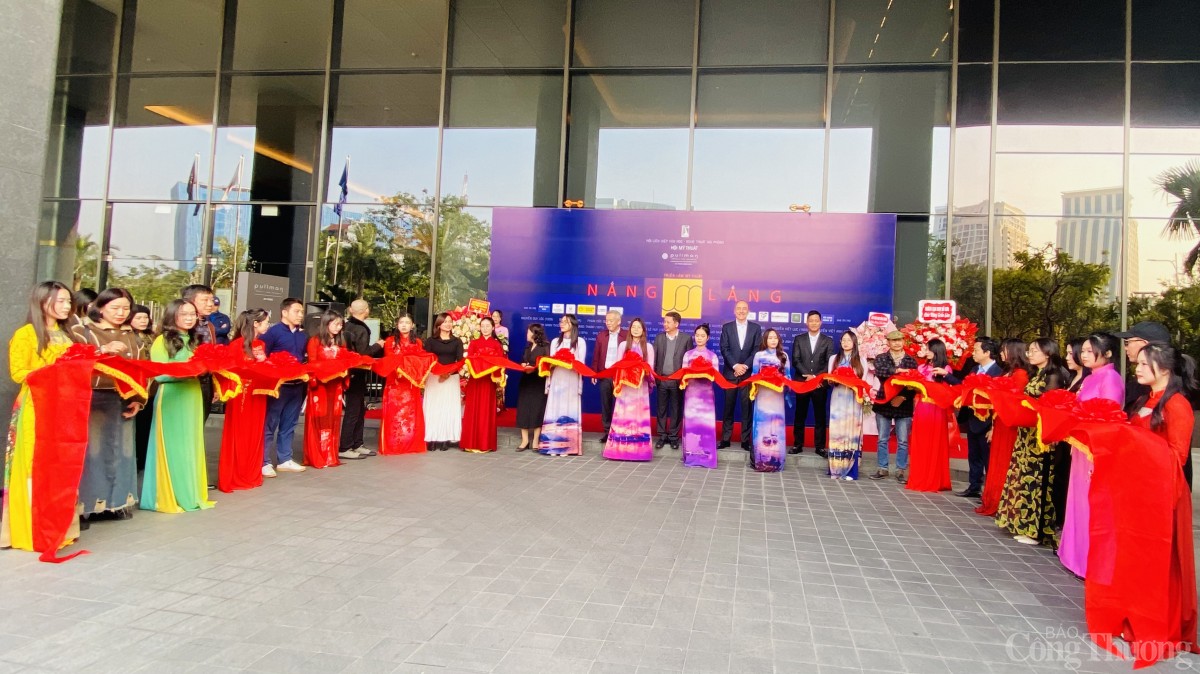 | Các đại biểu cắt băng giới thiệu, triển lãm mỹ thuật “Nắng và Lắng” |