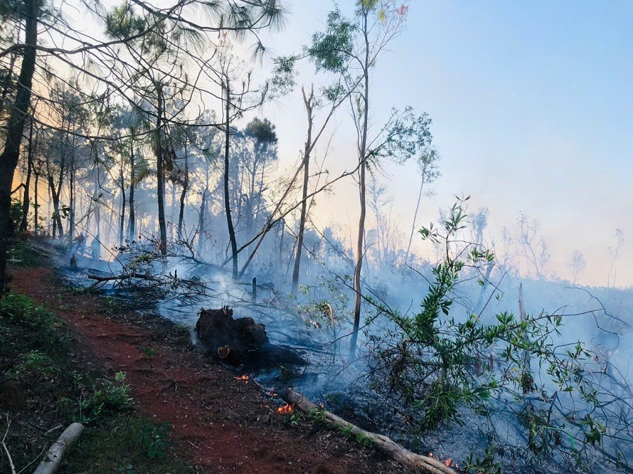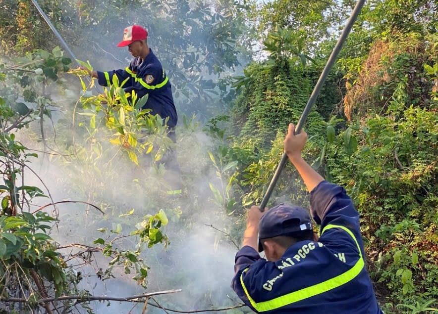 Núi Sơn Đào có địa hình đồi dốc cao, hiểm trở, có nhiều cỏ và bụi cây khô, bất chấp trời tối, hiểm nguy, lực lượng chức năng tiếp cận khu vực cháy, sử dụng các phương tiện chữa cháy, bình cứu hỏa, máy thổi và các dụng cụ cầm tay phát quang tạo đường băng cản lửa, từng bước khoanh vùng, cô lập đám cháy. Sau nhiều giờ nỗ lực, đến khoảng 21 giờ 30 phút cùng ngày, lực lượng chức năng đã khoanh vùng chữa cháy, chống cháy lan và đám cháy thảm thực bì rừng cơ bản được khống chế, dập tắt hoàn toàn, bảo đảm an toàn tuyệt đối về người cùng phương tiện, trang bị. Hiện, nguyên nhân vụ cháy đang được các cơ quan chức năng phối hợp điều tra, làm rõ.