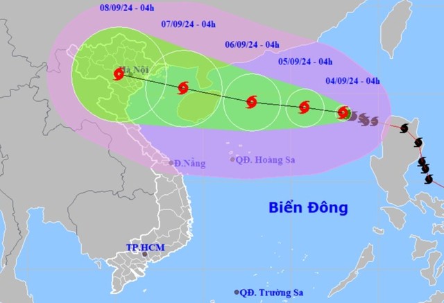 | Dự báo vị trí và hướng di chuyển của bão số 3. Nguồn: Trung tâm Dự báo khí tượng thủy văn Quốc gia |