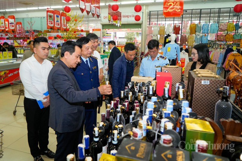 | Ông Nguyễn Văn Thành Giám đốc Sở Công Thương Hải Phòng cùng lãnh đạo Cục Quản lý Thị trường kiểm tra một gian hàng rượu trên địa bàn thành phố. |