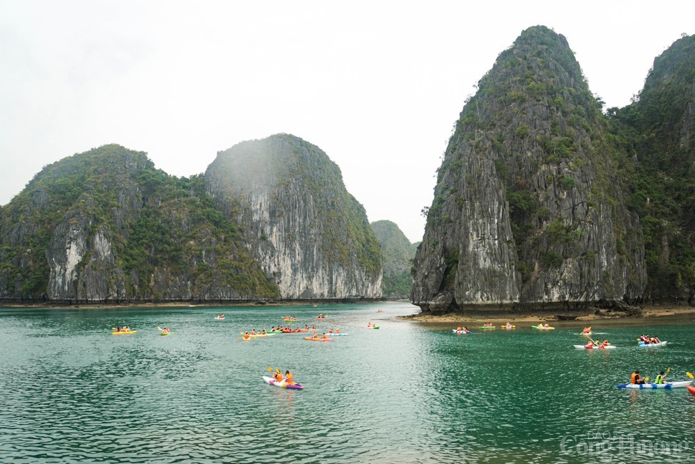 | Nhiều du khách chọn trải nghiệm chèo thuyền kayak giữa lòng Di sản thiên nhiên thế giới |