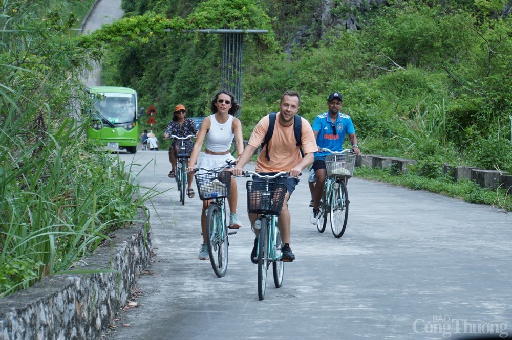 | Du khách nước ngoài đạp xe trên xã đảo Việt Hải, huyện Cát Hải |