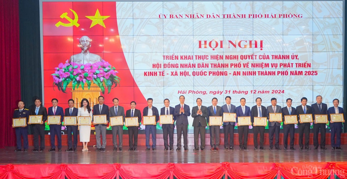 | Lãnh đạo TP. Hải Phòng khen thưởng các tập thể, cá nhân có thành tích xuất sắc trong phát triển kinh tế - xã hội thành phố năm 2024. |