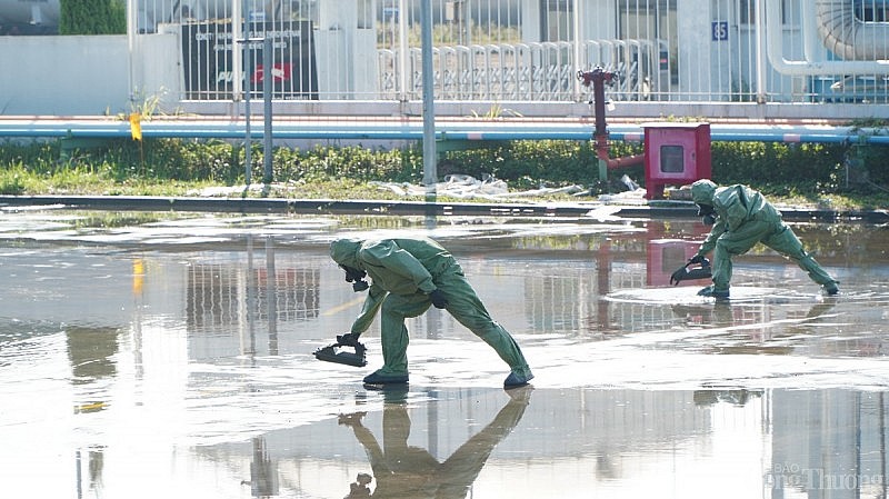 | Riêng trong buổi diễn tập gồm 4 giai đoạn: Phát hiện sự cố và thông báo; Nhà máy triển khai lực lượng ứng phó tại chỗ; Huy động các lực lượng bên ngoài tham gia cứu hộ cứu nạn và ứng phó sự cố hóa chất; Sự cố được khống chế, phục hồi trạng thái ban đầu. |