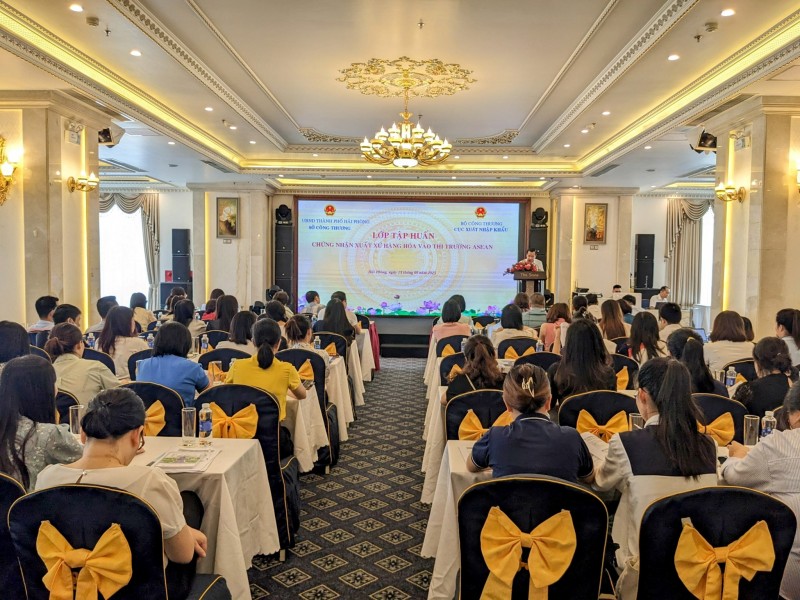 Nhằm hỗ trợ các doanh nghiệp sản xuất, kinh doanh, xuất nhập khẩu và đẩy mạnh hoạt động tự chứng nhận xuất xứ hàng hóa trong ASEAN, Sở Công Thương TP. Hải Phòng đã phối hợp với Cục Xuất nhập khẩu (Bộ Công Thương) tổ chức “Lớp tập huấn chứng nhận xuất xứ hàng hóa vào thị trường ASEAN”. Tham dự tập huấn có gần 200 đại diện các cơ quan quản lý nhà nước, doanh nghiệp sản xuất, kinh doanh, xuất nhập khẩu và các Hiệp hội doanh nghiệp trên địa bàn thành phố.