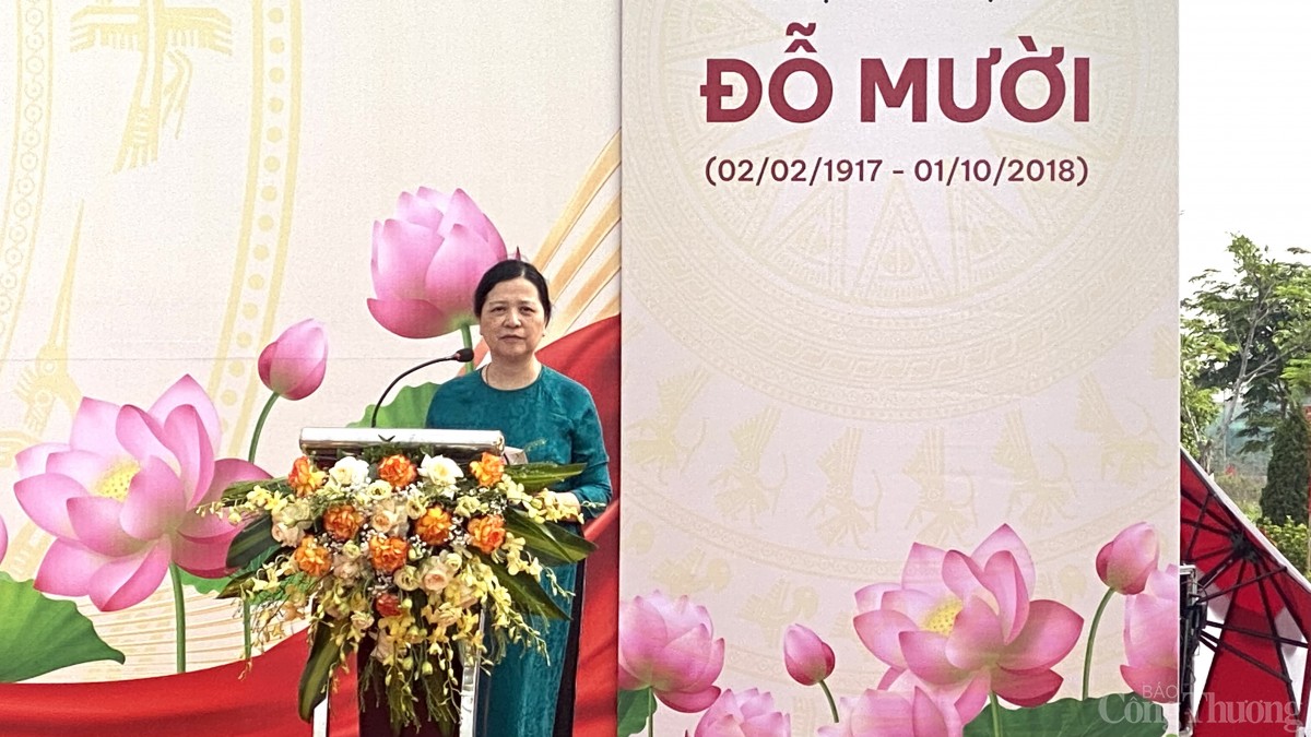 | Đại diện con gái cố Tổng Bí thư Đỗ Mười phát biểu về niềm tự hào, phát huy truyền thống gia đình, đồng thời cảm ơn TP. Hải Phòng đã tôn vinh, tri ân những công lao, đóng góp của cố Tổng Bí thư Đỗ Mười |