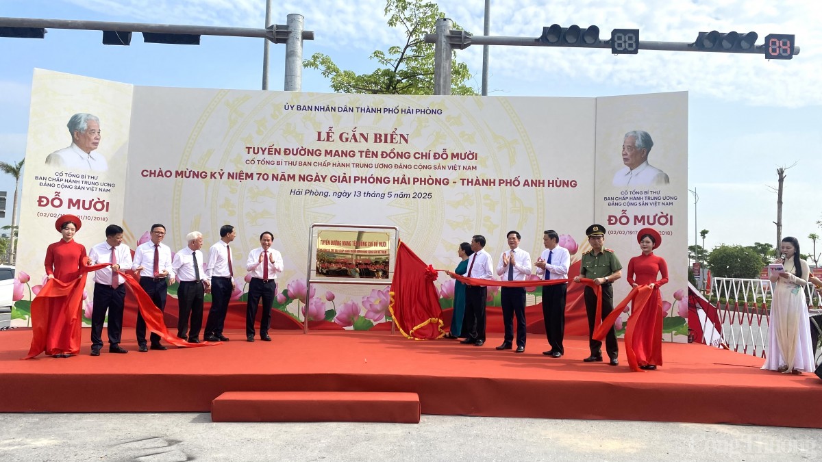 Sáng 13/5, tại nút giao giữa đường Đỗ Mười và đường trục Đông Tây, khu Trung tâm Chính trị hành chính Bắc sông Cấm, TP. Thủy Nguyên, UBND TP. Hải Phòng tổ chức lễ gắn biển tuyến đường mang tên đồng chí Đỗ Mười, cố Tổng Bí thư Ban Chấp hành Trung ương Đảng Cộng sản Việt Nam.