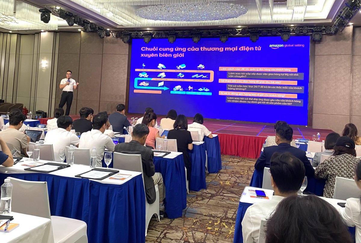Cùng với đó, các đại biểu cũng được đại diện của Amazon Global Selling Việt Nam chia sẻ về hành trình bán hàng trên Amazon, những lưu ý quan trọng khi bắt đầu kinh doanh trên Amazon; chia sẻ câu chuyện thực tế quán trình đồng hành cùng nhà bán hàng thành công trên Amazon… và giải đáp các câu hỏi, thắc mắc của các doanh nghiệp khi tham gia thương mại điện tử xuyên biên giới với Amazon.