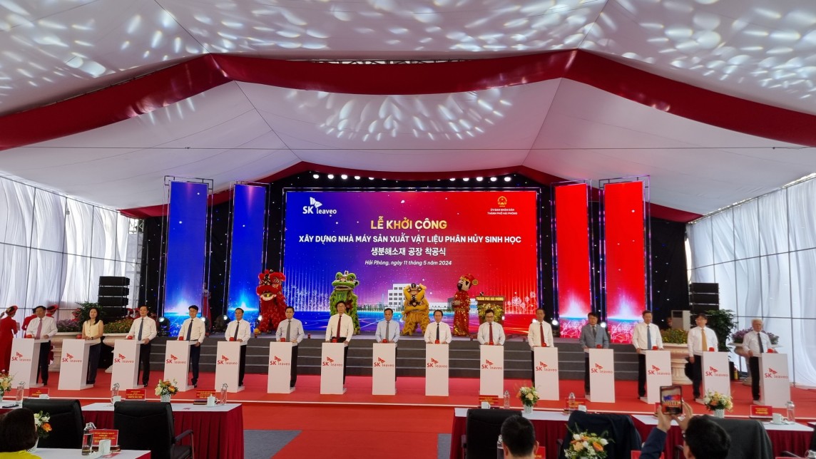 | Lễ khởi công xây dựng Nhà máy sản xuất vật liệu phân hủy sinh học tại TP Hải Phòng (Ảnh: Sở Thông tin và Truyền thông TP Hải Phòng) |