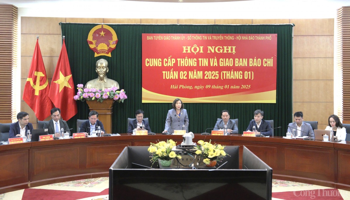 Chiều 9/1, Ban Tuyên giáo Thành ủy Hải Phòng, Sở Thông tin và Truyền thông Hải Phòng, Hội Nhà báo Hải Phòng phối hợp tổ chức hội nghị cung cấp thông tin và giao ban báo chí tuần 2 năm 2025 (tháng 1). Hội nghị cung cấp thông tin về kết quả kinh tế - xã hội TP. Hải Phòng năm 2024, chỉ tiêu phương hướng năm 2025; cung cấp thông tin về 10 kết quả nổi bật trong phát triển của TP. Hải Phòng năm 2024.