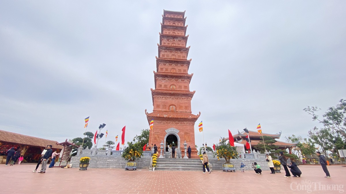 | Nhân dân và du khách du xuân, chiêm bái chùa - tháp Tường Long ngày 4/2 (tức ngày 7 tháng Giêng năm Ất Tỵ) |