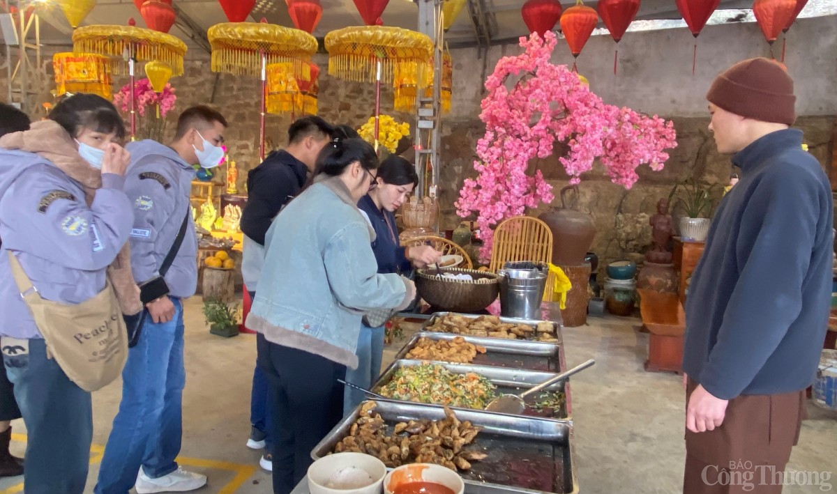 | "Bữa ăn bên cửa thiền" miễn phí tại chùa Hang thu hút đông đảo người dân và du khách thưởng thức. |
