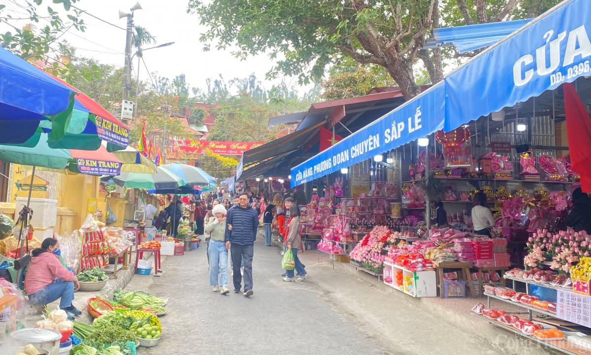 | Hàng quán được bày bán gọn gàng tại các khu lễ hội xuân, giá cả ổn định tạo tâm lý thoải mái cho người dân và du khách mua sắm và thưởng thức đặc sản địa phương. |