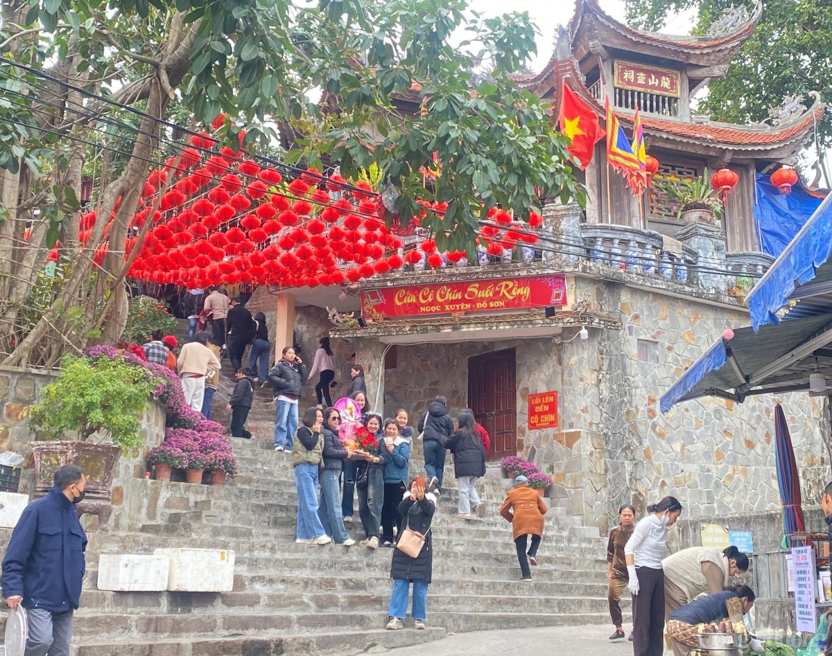 | Đền Long Sơn (đền Cô Chín Suối Rồng), phường Ngọc Xuyên, quận Đồ Sơn, TP. Hải Phòng thu hút đông đảo nhân dân và du khách du xuân và chiêm bái mỗi dịp Tết đến, Xuân về. |