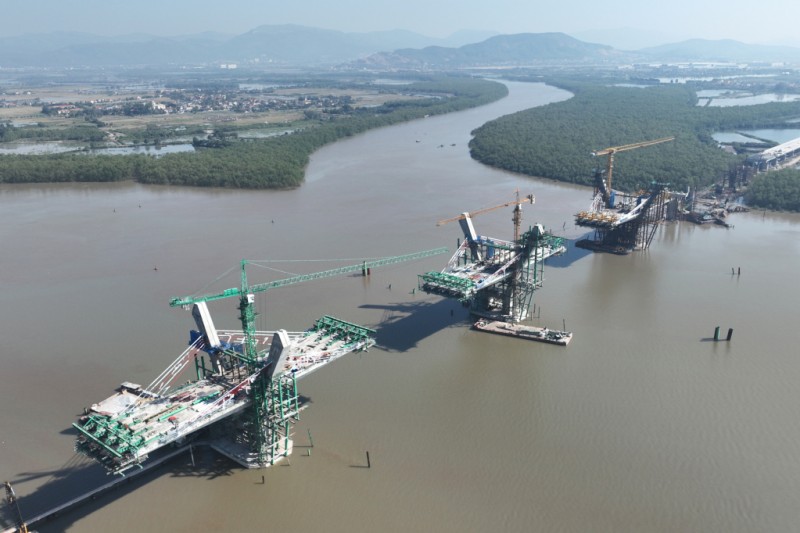 Đối với bờ phía TP Hải Phòng, dự án đã hoàn thành thi công các trụ cầu dẫn, đúc xong dầm và thực hiện tháo lắp 15/16 nhịp dầm cầu dẫn. Các nhà thầu đang tiến hành thi công đường nối và lao lắp nhịp cầu dẫn cuối cùng. Vị trí cầu chính giữa sông đã thi công xong toàn bộ thân 3 trụ tháp chính.