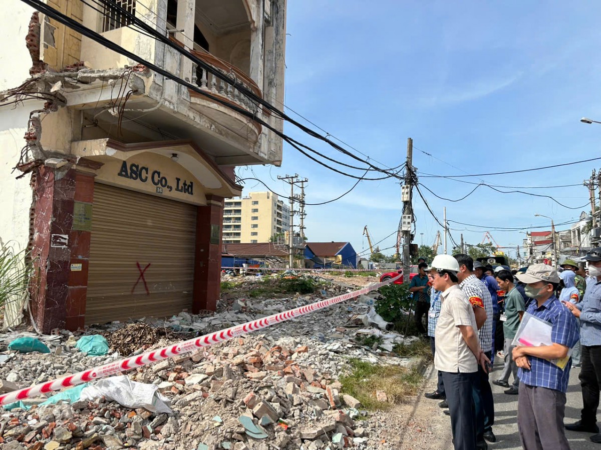 Ban cưỡng chế quận Ngô Quyền, TP. Hải Phòng thực hiện cưỡng chế thu hồi đất đối với 1 hộ dân thực hiện dự án đầu tư xây dựng cầu Nguyễn Trãi. Ảnh: Thu Anh |