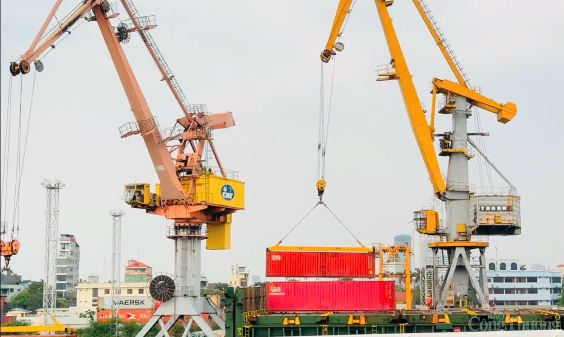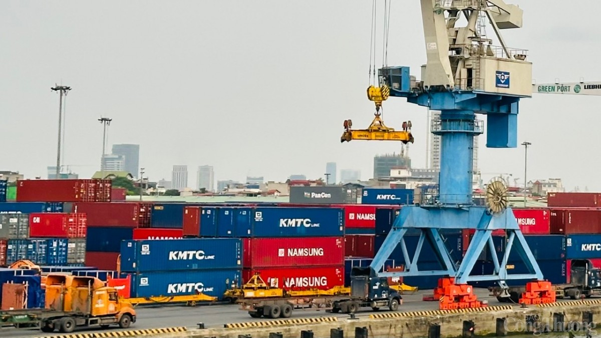 | Hàng hóa xuất nhập khẩu bốc dỡ thông qua Cảng Hải Phòng. |