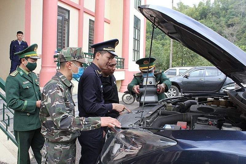 Cán bộ Hải quan và Bộ đội Biên phòng phối hợp kiểm tra phương tiện nhập cảnh qua Cửa khẩu quốc tế Na Mèo. Ảnh: Hải Quan Thanh Hóa |