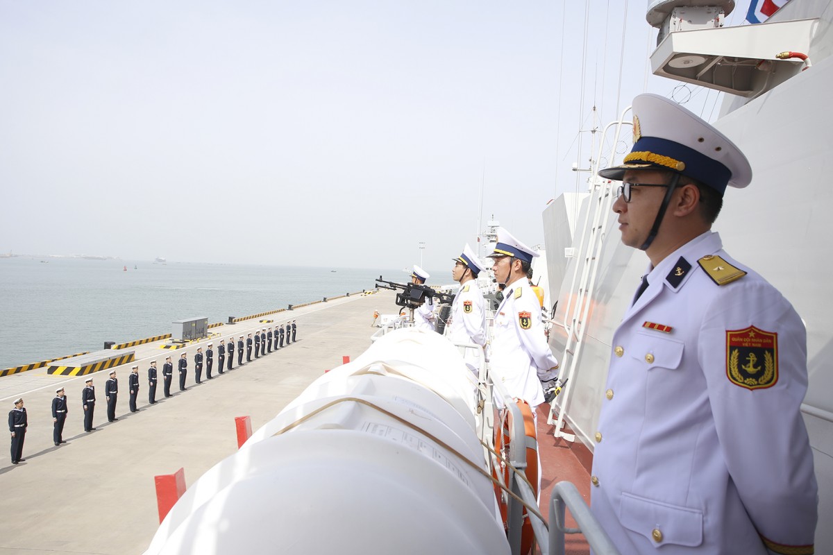 Trước khi rời bến, Đại tá Đỗ Minh và Đại tá Triệu Diệm Vũ đã báo cáo trực tuyến với Bộ trưởng Bộ Quốc phòng hai nước (đang tham gia Giao lưu hữu nghị quốc phòng biên giới Việt Nam - Trung Quốc lần thứ 9 tại Khu tự trị dân tộc Choang Quảng Tây, Trung Quốc) về kết quả các hoạt động giao lưu tại TP. Bắc Hải và công tác chuẩn bị cho nhiệm vụ tuần tra liên hợp.