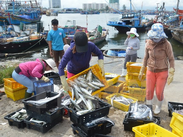 | Ngư dân vận chuyển hải sản lên cảng Thọ Quang (Đà Nẵng) đi tiêu thụ. (Ảnh: Đinh Văn Nhiều/TTXVN) |