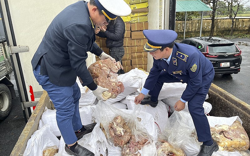 Trước đó, ngày 26/12/2022, Đội Quản lý thị trường số 6 cũng đã phối hợp với các lực lượng chức năng phát hiện, khám xe ô tô tải mang biển số 89C - 259.96 đang di chuyển theo chiều từ Bắc vào Nam đi qua địa phận tỉnh Hà Tĩnh. Phương tiện do ông Lê Ngọc Hiếu có địa chỉ tại xã Chí Tân, huyện khoái Châu (tỉnh Hưng Yên) điều khiển. Qua kiểm tra, lực lượng chức năng phát hiện 3.120kg sản phẩm động vật đông lạnh (nội tạng, da, xương, mỡ bò) đã đổi màu và bốc mùi hôi thối. Số hàng hóa này không xác định được nguồn gốc, xuất xứ, đội Quản lý thị trường số 6 đã xác định được số hàng này là của ông Nguyễn Duy Anh có địa chỉ tại tổ 2, khu phố 7, Trần Quang Diệu, TP. Quy Nhơn (tỉnh Bình Định) mua về để kinh doanh.