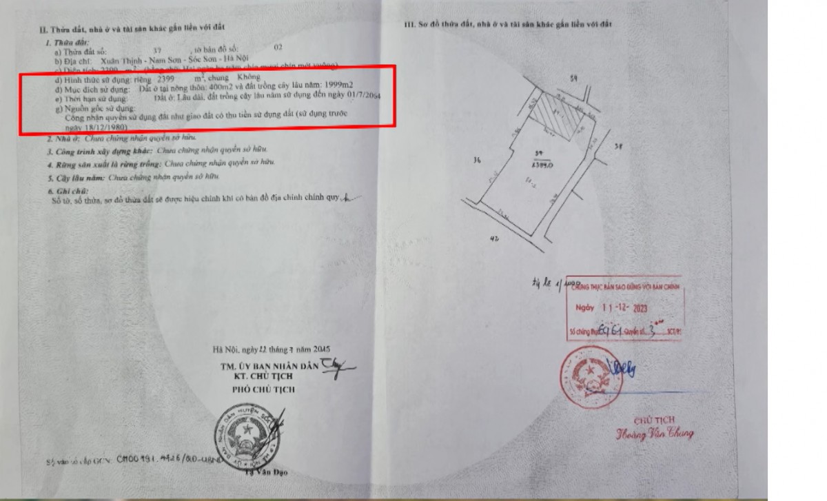 Theo tìm hiểu của phóng viên, trước khi ban hành Phương án chi tiết bồi thường hỗ trợ tái định cư cho người dân bị ảnh hưởng từ Khu liên hợp xử lý chất thải Nam Sơn, người dân tại xóm 20, thôn Xuân Bảng đã được cấp Giấy chứng nhận quyền sử dụng đất (sổ đỏ) vào các năm từ 2015 - 2017, trong đó có cả phần diện tích đất ở, đất ao vườn và đất trồng cây lâu năm.
