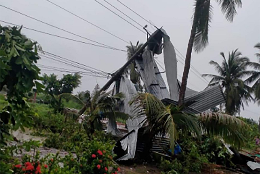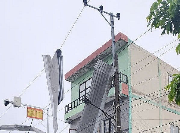 | Mưa lớn kèm theo lốc xoáy làm bay các mái tole ảnh hưởng đến lưới điện tại tỉnh Bến Tre (Ảnh: EVNSPC). |