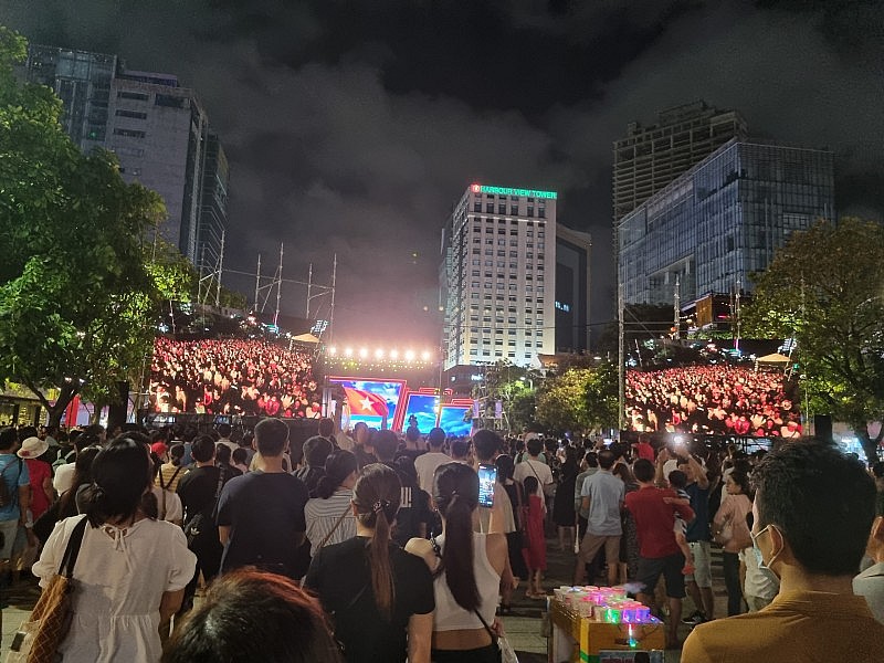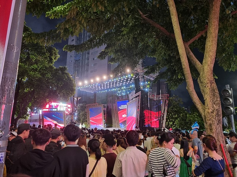 Tối 2/9, rất đông người dân đã đổ ra khu vực trung tâm TP. Hồ Chí Minh để chờ đón xem màn bắn pháo hoa chào đón Lễ Quốc khánh 2/9.