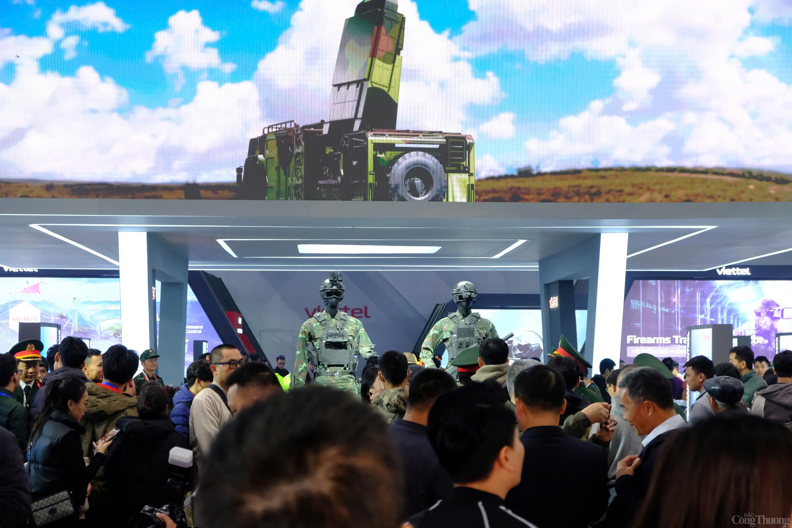 | Khu vực trưng bày "người lính tương lai" của Viettel chật kín du khách. |