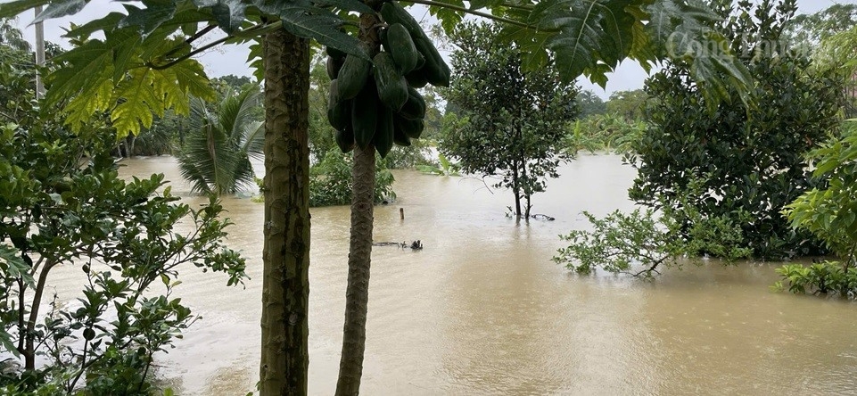 | Nước lũ dâng cao làm ngập úng toàn bộ hoa màu của người dân xã Hoằng Quang, TP. Thanh Hóa. Ảnh: Hoàng Minh. |