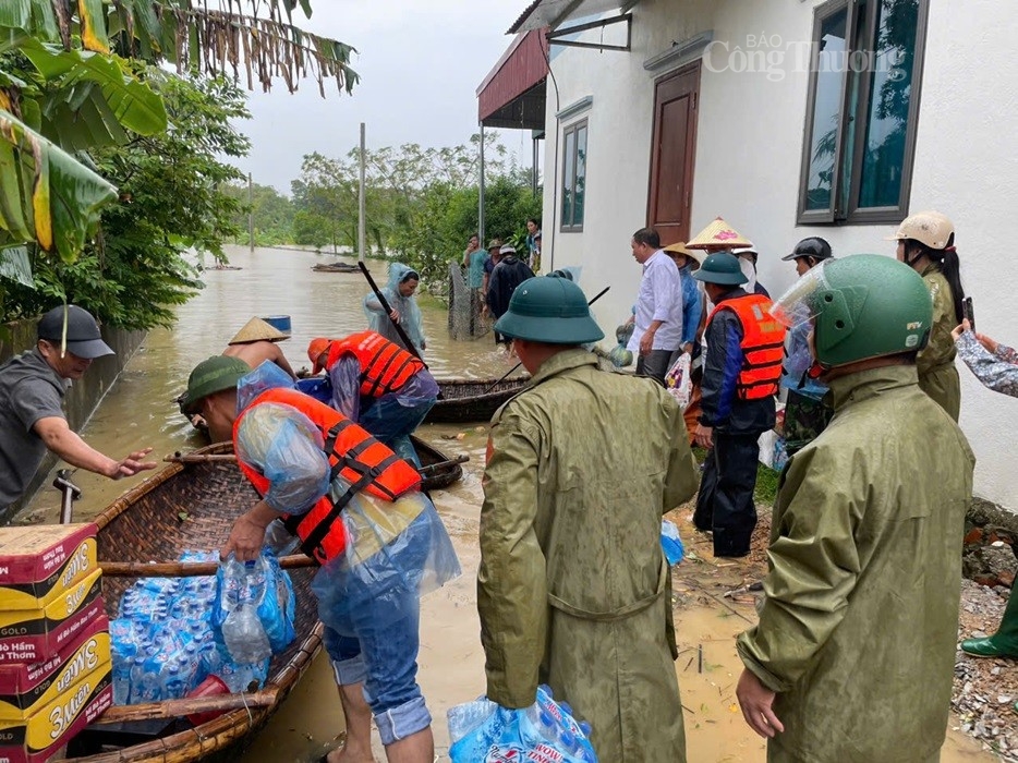 | Lực lượng chức năng phường Thiệu Khánh đã được huy động để đưa nhu yếu phẩm đến tay người dân vùng lũ. Ảnh: Hoàng Minh. |