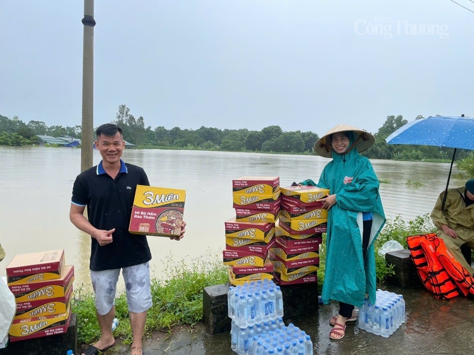 | Ông Vũ Ngọc Lâm, Giám đốc Công ty TNHH Linh Chi cho biết: Ngay trong sáng nay 23/9, anh em chúng tôi gồm có 5 người đã mang theo mỳ tôm, nước tinh khiết giúp đỡ người dân vùng lũ ở phường Thiệu Khánh và xã Hoằng Quang. |