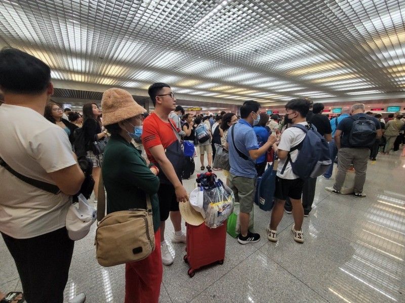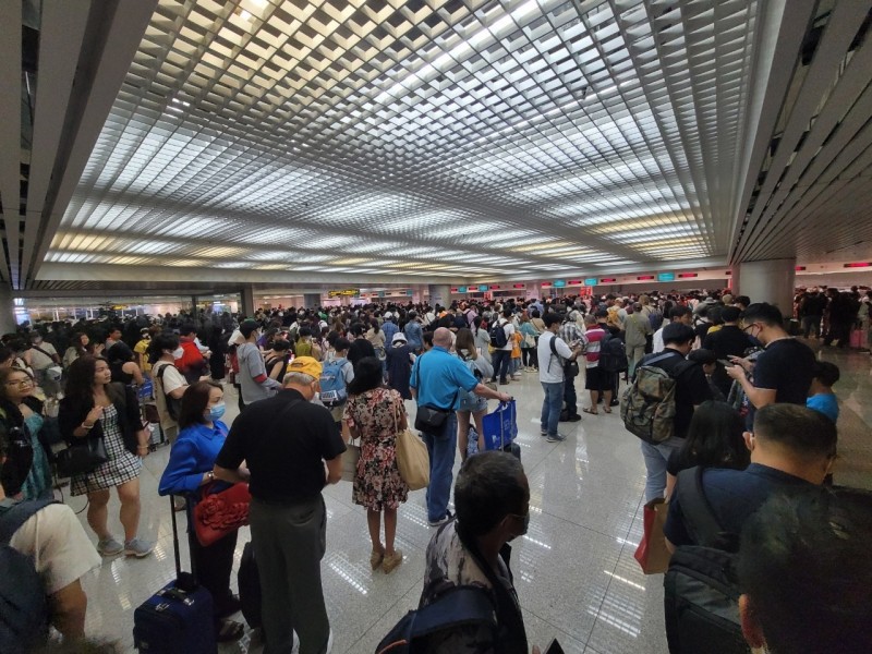 | Tại khu vực nhập cảnh, hàng nghìn người phải chen chúc xếp hàng chờ làm thủ tục |