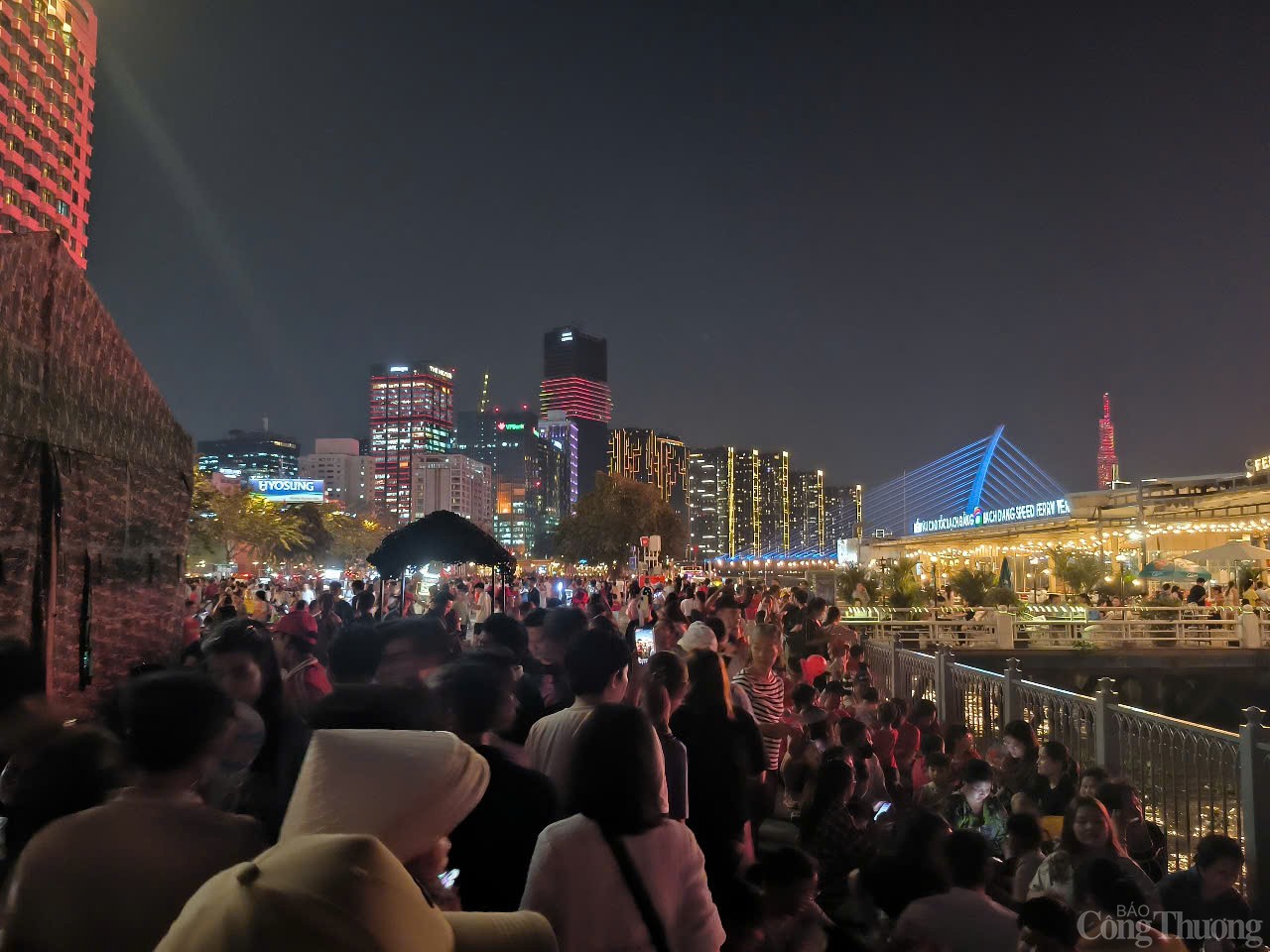 | Ngay từ tối, người dân TP. Hồ Chí Minh đã tập trung tại khu vực Bến Bạch Đằng để đón chờ màn trình diễn drone. |