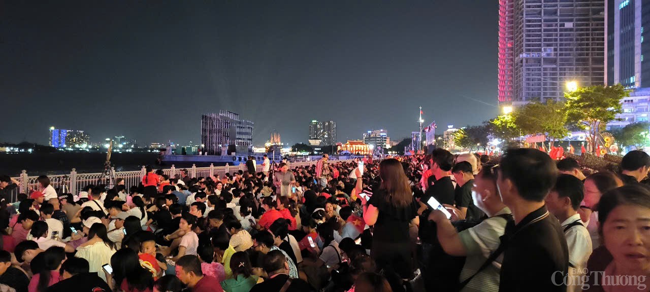 Theo ghi nhận của phóng viên Báo Công Thương, tại khu vực bến tàu Bạch Đằng, từ rất sớm, hàng nghìn người dân đã có mặt, tìm kiếm cho mình một vị trí ngồi thích hợp để có thể thưởng ngắm màn trình diễn này.