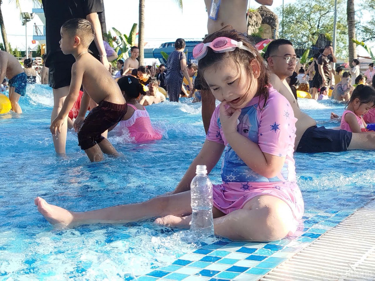 Anh Lê Thanh Tùng (quận Nam Từ Liêm, TP. Hà Nội) chia sẻ: “Hôm nay là Quốc tế Thiếu nhi, 2 cháu nhà tôi thích được đi bơi nên cả nhà quyết định đến đây. Dù đông người nhưng dịch vụ ở đây khá tốt”.