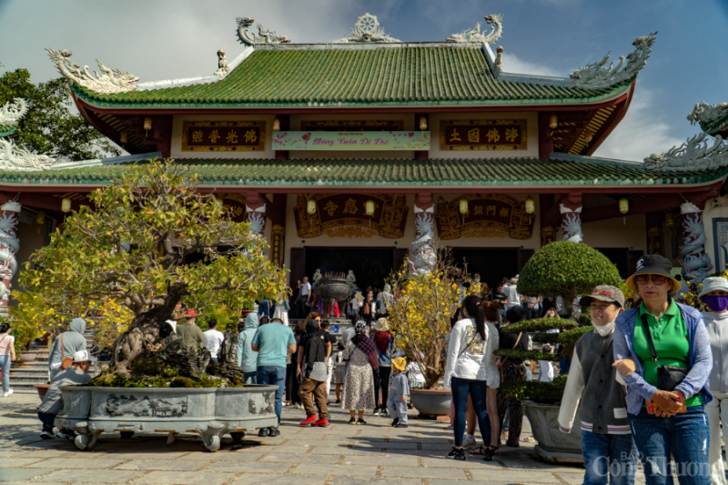| Càng về trưa, lượng người đổ về Chùa Linh Ứng Bãi Bụt càng đông, ai cũng có mong muốn bái Phật cầu an và may mắn cho người thân, gia đình. |