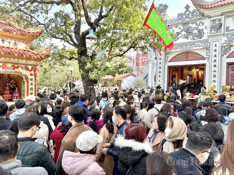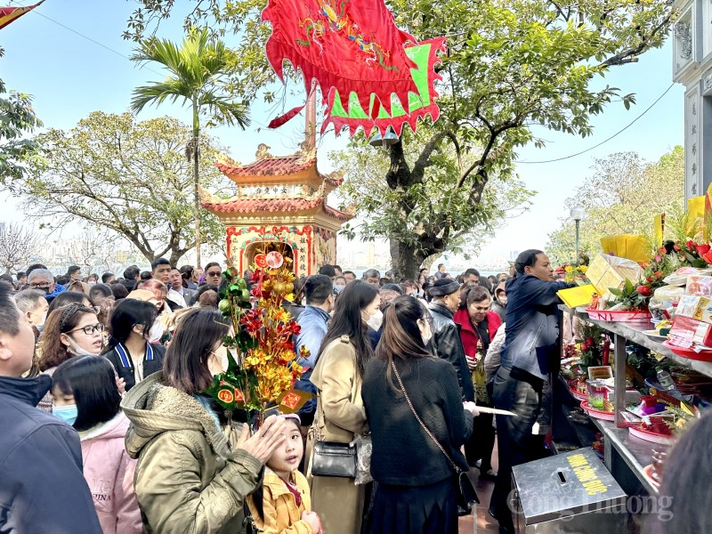 | Nhiều khách đứng vái vọng từ xa do phía trong phủ quá đông |