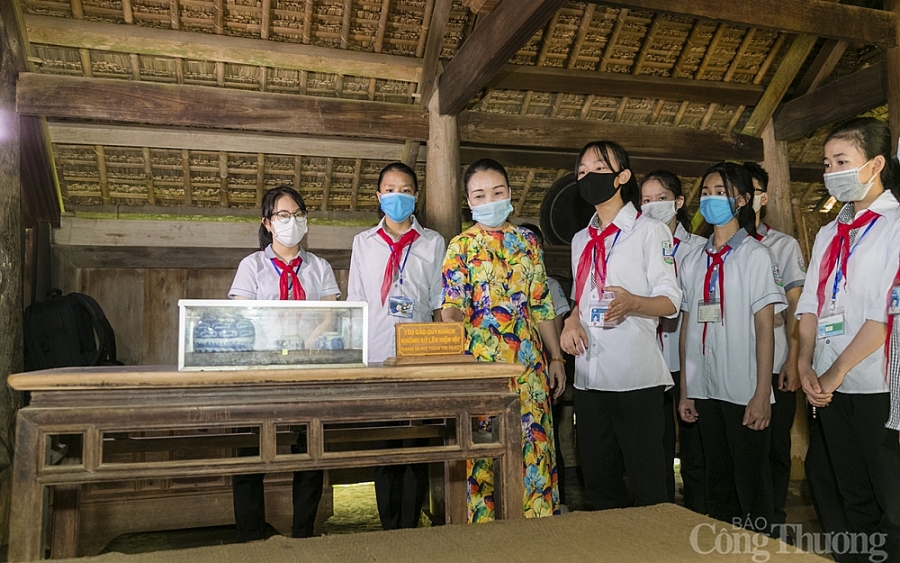 Về quê Bác được tận mắt nhìn thấy, nghe những câu chuyện liên quan đến kỷ vật được gìn giữ trong nhà cụ Phó bảng Nguyễn Sinh Sắc - thân sinh Chủ tịch Hồ Chí Minh. |