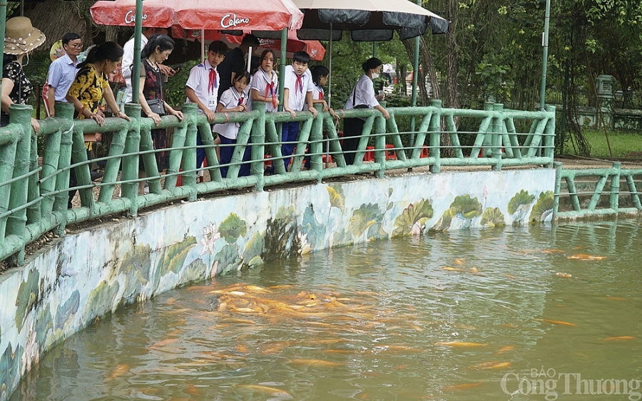 | Giáo viên, học sinh đến dâng hương, tham quan tại Đền Chung Sơn - thờ gia tiên Chủ tịch Hồ Chí Minh thuộc cụm di tích núi Chung (huyện Nam Đàn, Nghệ An). |