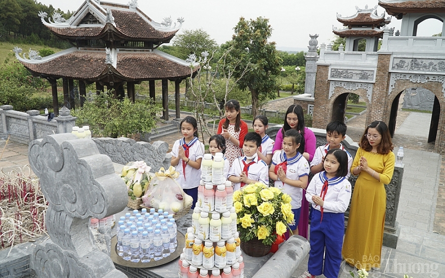 | Trường THCS Lê Lợi TP.Vinh, tỉnh Nghệ An tổ chức cho học sinh đi tham quan, dâng hương báo công với Bác Hồ tại quê hương của Người. |