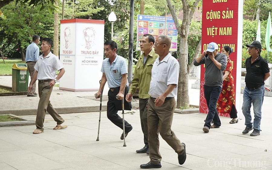 Cựu chiến binh Nguyễn Đình Thạch (Chương Mỹ, Hà Nội) cùng đồng đội lần đầu tiên về thăm quê Bác, xúc động trước những hình ảnh, kỷ vật nơi mảnh đất sinh ra vị cha già dân tộc. |