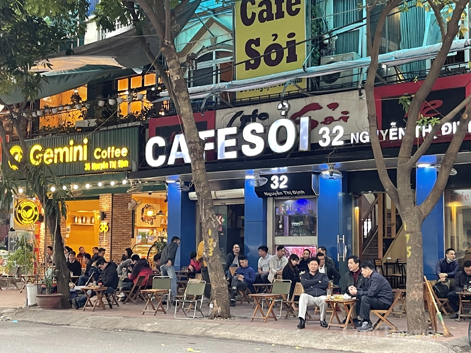 Các hàng cà phê trên phố Nguyễn Thị Định (quận Thanh Xuân) sang ngày hôm nay đã đông khách hơn