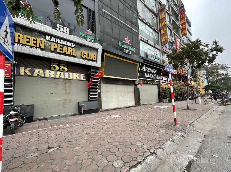 Các quán karaoke trên phố Trần Nhân Tông vẫn đóng cửa nghiêm chỉnh theo quy định