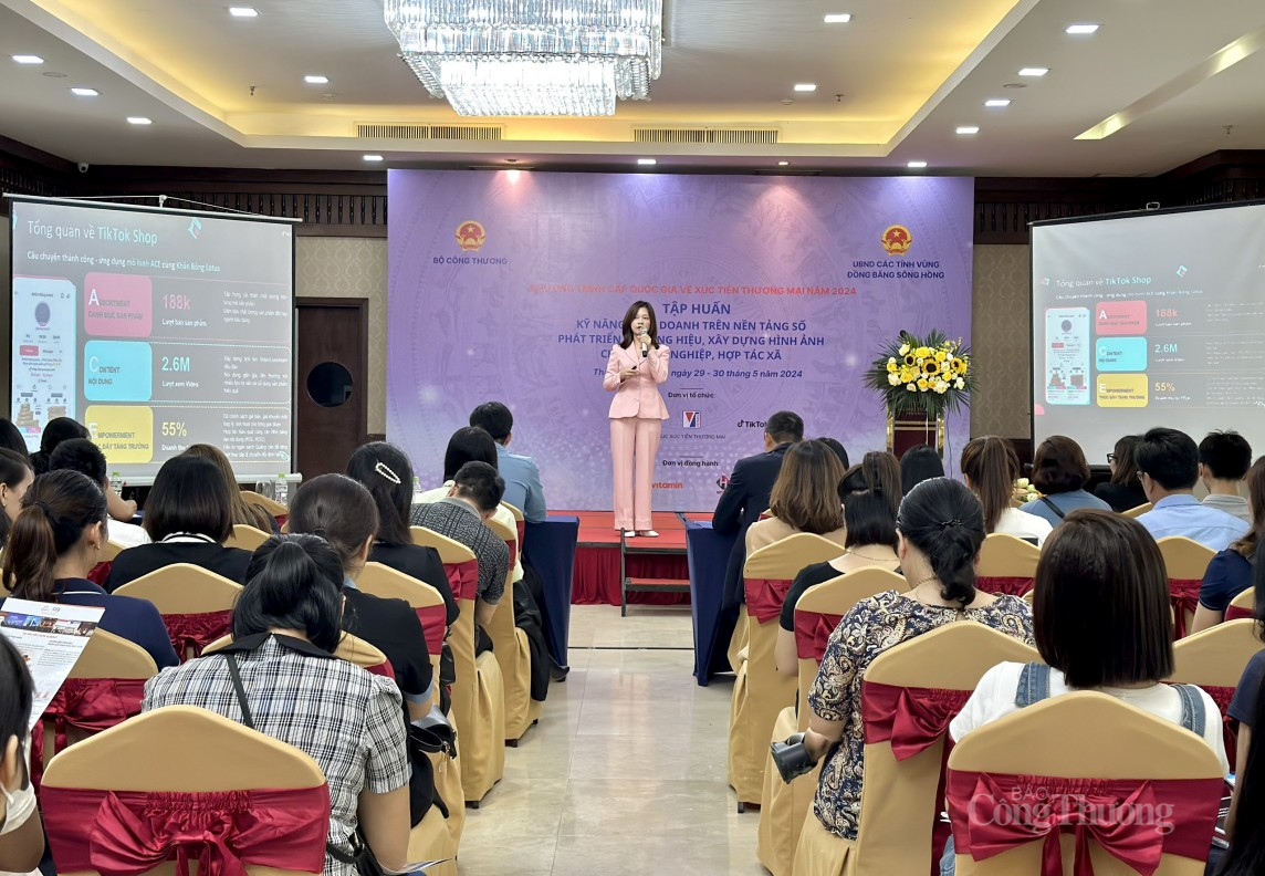 Chính vì vậy, để thúc đẩy hoạt động liên kết vùng và ứng dụng khoa học công nghệ nâng cao năng lực sản xuất, kinh doanh theo hướng tuần hoàn, hướng tới kinh tế xanh, bền vững, Cục Xúc tiến thương mại đã phối hợp cùng TikTok, Alibaba.com, OSB (Đại lý ủy quyền Alibaba.com tại Việt Nam), các nhà bán hàng uy tín trên TikTok Shop và các đơn vị/cá nhân liên quan tổ chức chuỗi Chương trình tập huấn kỹ năng kinh doanh trên nền tảng số phát triển thương hiệu, xây dựng hình ảnh cho doanh nghiệp, hợp tác xã vùng Đồng bằng Sông Hồng.