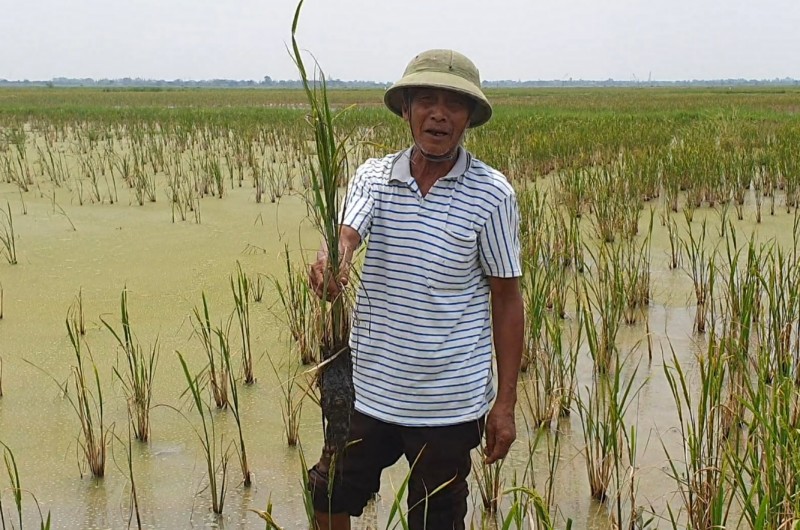 | Hơn trăm hec ta lúa, hoa màu của người dân xã An Tân bị chết, không được thu hoạch |