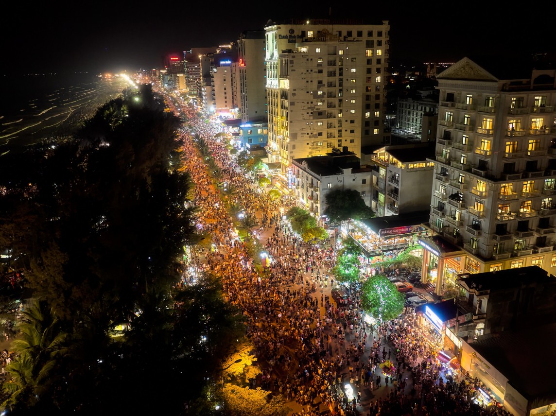 Quảng trường biển và trục cảnh quan lễ hội TP. Sầm Sơn là một điểm nhấn của Sầm Sơn nói riêng và Thanh Hóa nói chung. Trong đêm qua (27/4/2024), hàng trăm nghìn người đã đổ về đây để tham gia sự kiện này. (Ảnh: QH) |